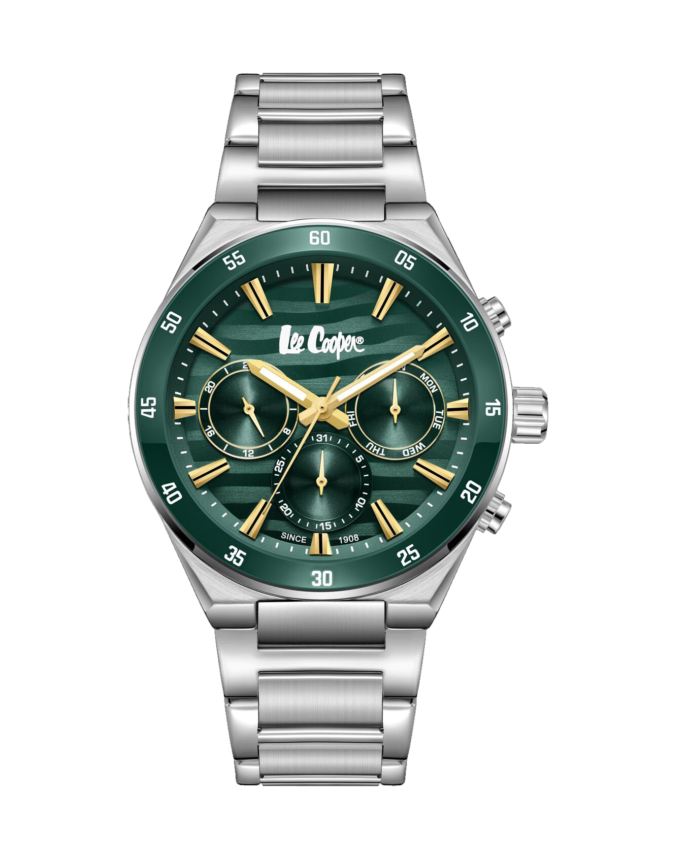 ساعت اورجینال لیکوپر مردانه مدل Lee Cooper LC08175.370 یکی از مدلهای حرفهای و شاخص برند لیکوپر است که با طراحی مدرن، ساختار مقاوم و موتور کرونوگراف، برای آقایانی که به دنبال یک ساعت دقیق، خوشساخت و ماندگار هستند گزینهای ایدهآل محسوب میشود. ترکیب قاب و بند فلزی سیلور با صفحه سبز، ظاهری جذاب و متفاوت ایجاد کرده که این مدل را از بسیاری ساعتهای مردانه همرده متمایز میکند.