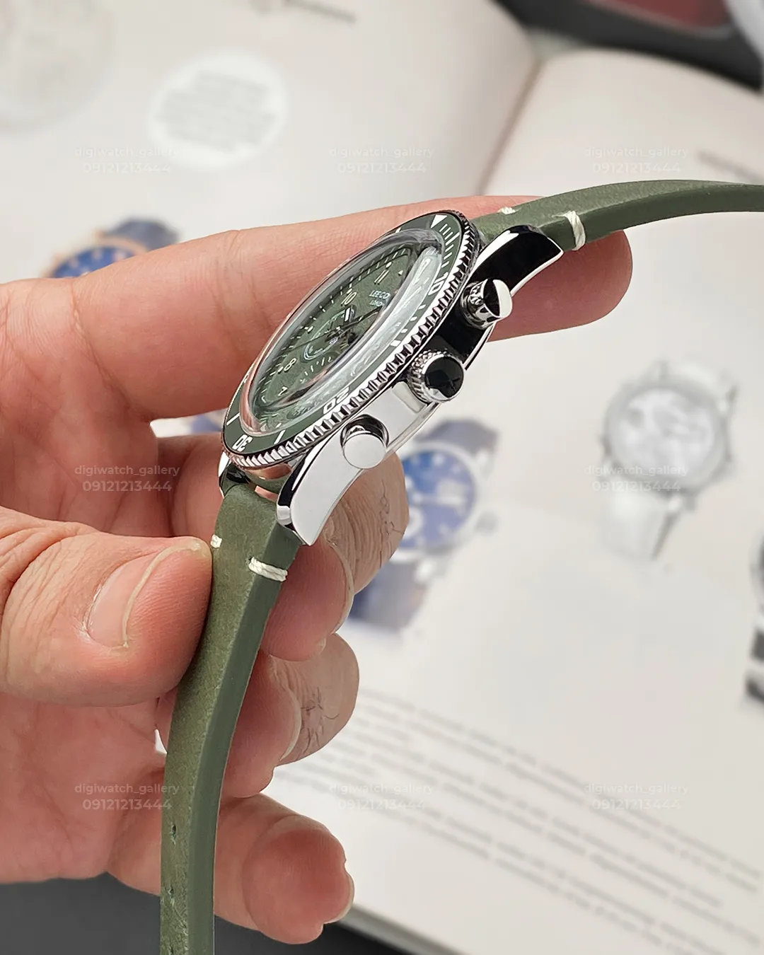 یکی از ویژگیهای برجسته این مدل، طراحی کلاسیک با رنگبندی سبز است؛ ترکیبی که کمتر در ساعتهای رسمی مشاهده میشود اما در این مدل با دقت و ظرافت اجرا شده است. بند چرمی سبز با صفحه سبز هماهنگ شده و قاب فلزی سیلور، ترکیب را متعادل و رسمی نگه داشته است.