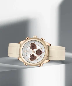 این ساعت نیوی فورس با طراحی مدرن و کاربردی، برای کاربران زنانه تولید شده است و با توجه به سبک روزمره و اسپرت، به انتخابی عالی تبدیل شده است. ویژگیهای برجسته این ساعت نیوی فورس عبارتند از: