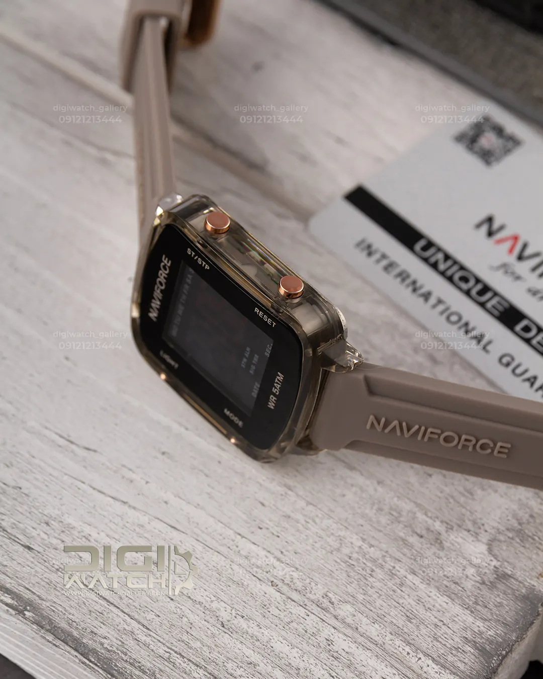 ساعت زنانه نیوی فورس Naviforce NF7120 GY/GY انتخابی هوشمندانه برای بانوانی است که به دنبال ترکیبی از زیبایی، دقت و کیفیت هستند. این مدل از کالکشن 2025 برند محبوب Naviforce، با طراحی چهارگوش، رنگ خاکستری خاص و ساختار مقاوم، استایلی مدرن و حرفهای را به نمایش میگذارد. قاب رزینی شفاف با درخشش متالیک و بند رابر نرم، جلوهای خاص به دست شما میبخشد. وزن سبک تنها ۳۸ گرم و قطر قاب ۳۴ میلیمتر، استفادهی طولانیمدت از ساعت را بسیار راحت کرده است؛ بدون کوچکترین احساس سنگینی یا فشار روی مچ دست.