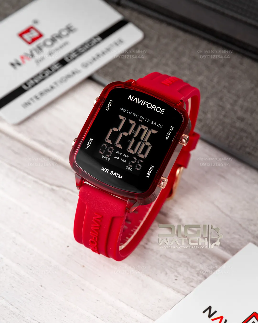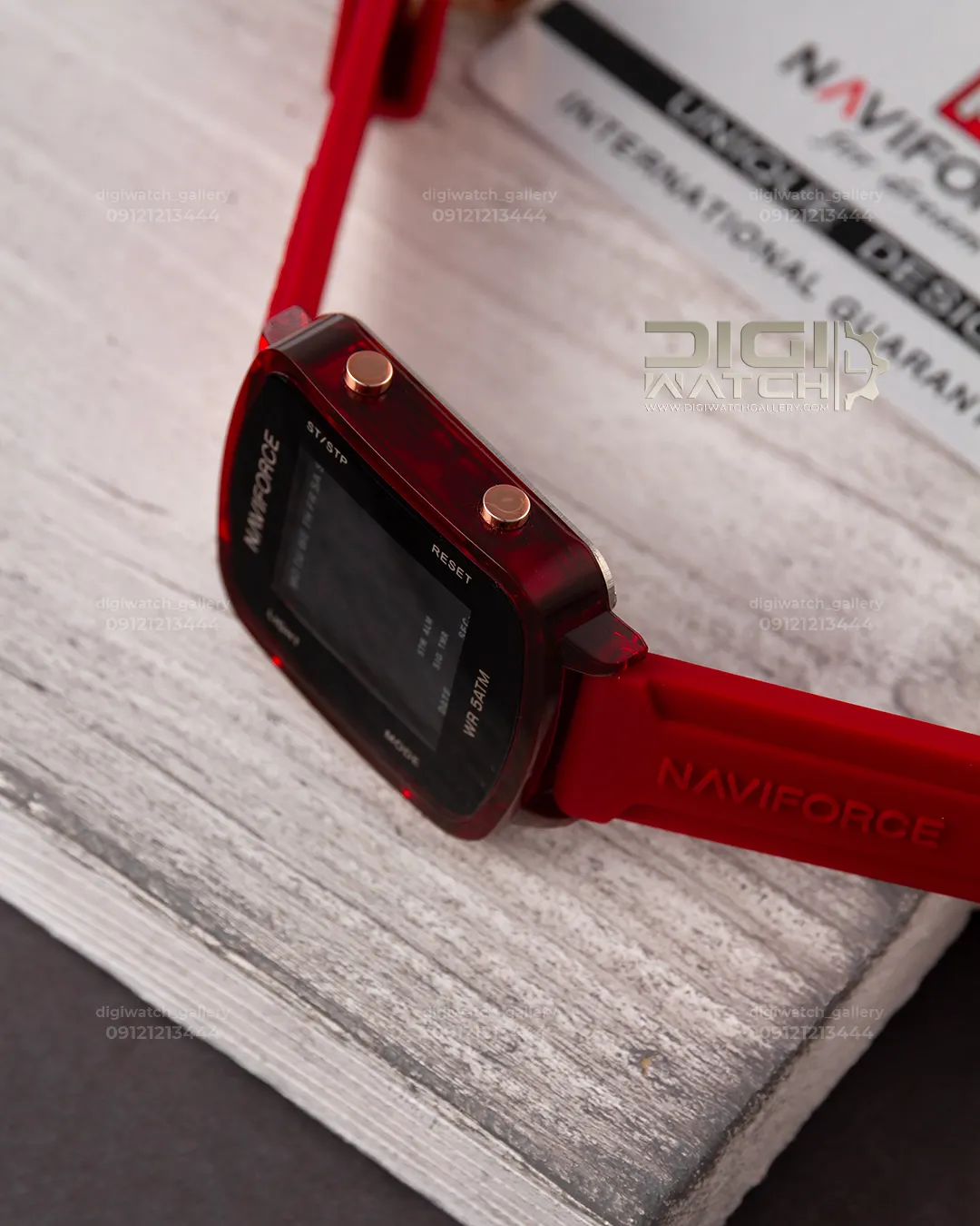اگر به دنبال ساعتی هستید که در هر موقعیتی جلوهای خاص به استایل شما ببخشد،ساعت اورجینال زنانه نیوی فورس Naviforce NF7120 R/R دقیقاً همان چیزی است که نیاز دارید. این ساعت زنانه از کالکشن جدید برند Naviforce در سال 2025 بوده و با ترکیبی از طراحی مدرن، رنگ قرمز درخشان و امکانات دیجیتال دقیق ساخته شده است تا بهراحتی میان استایل روزمره، ورزشی و نیمهرسمی شما قرار گیرد. در نگاه نخست، قاب رزینی شفاف با درخشش قرمز متالیک، جذابیت بصری خیرهکنندهای ایجاد میکند. بند رابر نرم و ضدحساسیت، با رنگ هماهنگ قرمز، حس انرژی، اعتمادبهنفس و تحرک را القا میکند. وزن سبک ۳۸ گرمی و ابعاد متناسب ۳۴ میلیمتری باعث میشود این مدل برای استفادهی روزانه یا حتی ساعات طولانی در محل کار، باشگاه یا سفر کاملاً راحت باشد.