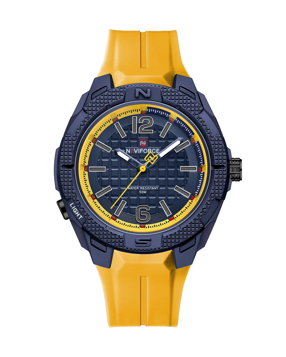 طراحی جمع و جور و مینیمال آن (قطر حدود 45 میلیمتر و وزن 55 گرم) باعث میشود به زیبایی روی مچ دست قرار بگیرد و با هر استایلی در روزمره تا نیمه رسمی هماهنگ شود. این ساعت نیوی فورس حس نظم، دقت و اعتماد به نفس را منتقل میکند.