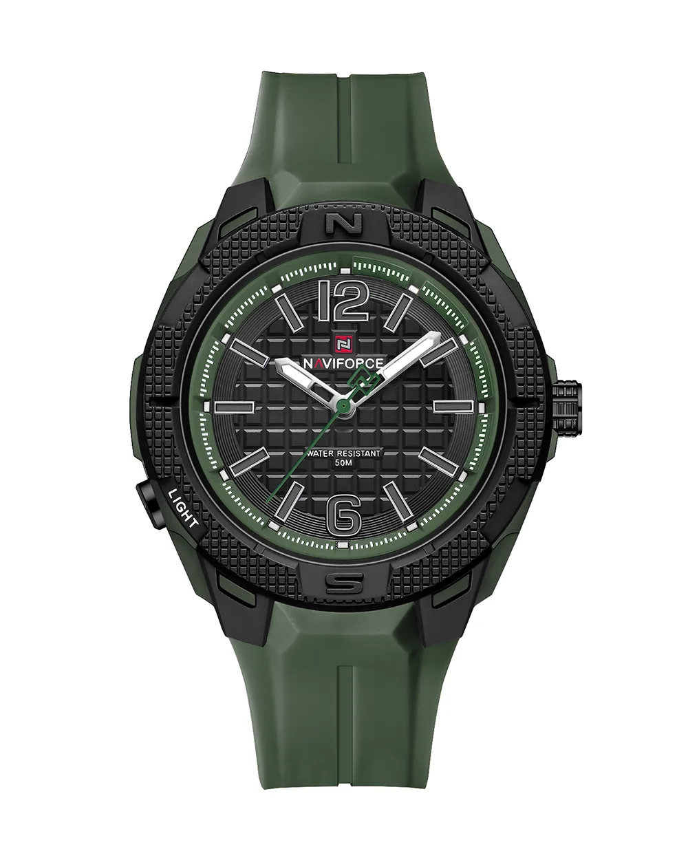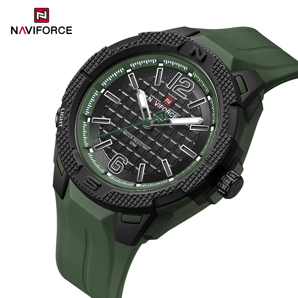 ساعت اورجینال مردانه نیوی فورس مدل NAVIFORCE NF7126 GN/B/GN ، گزینهای عالی برای آقایانی است که به دنبال یک ساعت زیبا و باکیفیت هستند. این ساعت با طراحی صفحه مشکی گرد و بند رابر سبز ، ظاهری مدرن و در عین حال کلاسیک را به نمایش میگذارد.