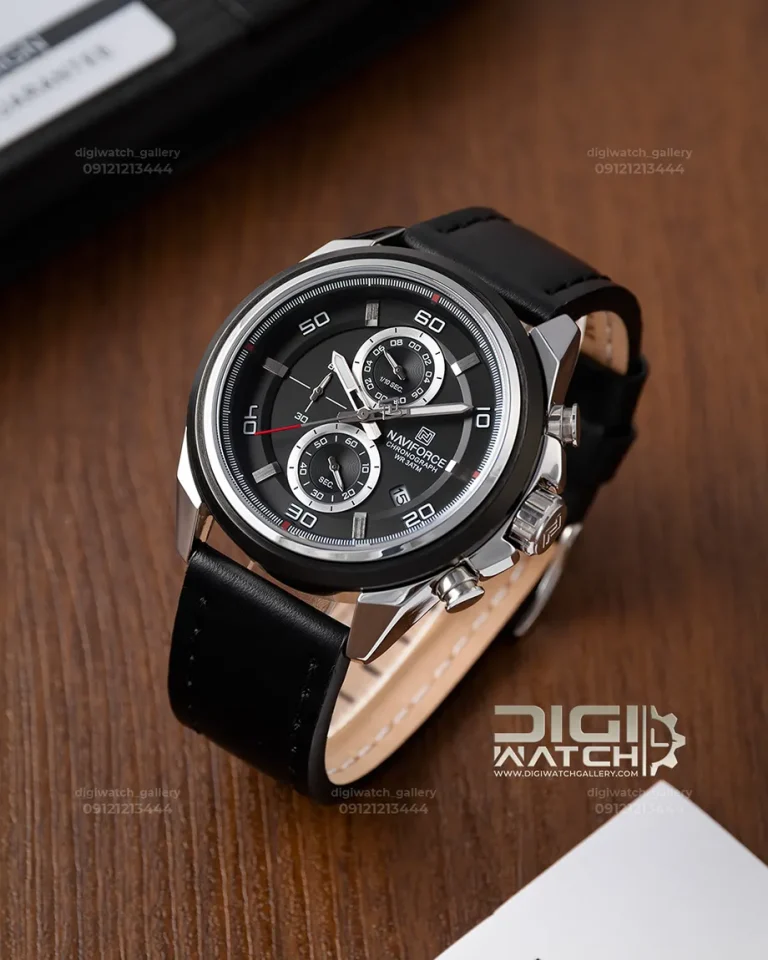 دقت بالا با موتور سهگانه کرونوگراف ساعت اورجینال مردانه نیوی فورس NF8075 S/B/B