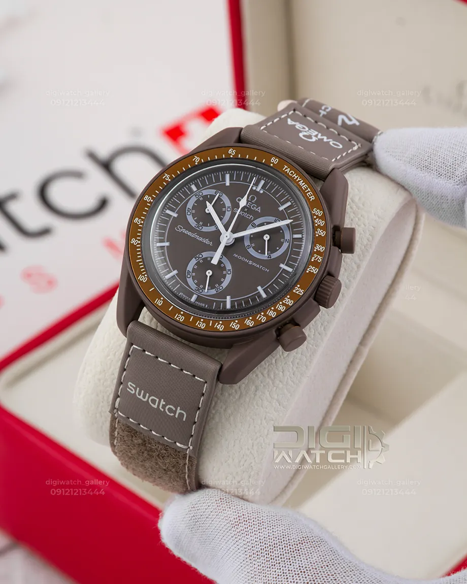 ساعت امگا سواچ فلزی مدل زحل Omega Swatch Mission to Saturn ، بند رابر مقاوم و رنگ قهوهای خاص، یکی از محبوبترین انتخابها در میان علاقه مندان به ساعتهای اسپرت و خاص بهحساب میآید.